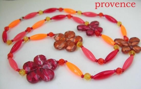 3cmの大きなプラスティックの花と蝶にスパゲティのような細長いビーズと丸いアクリル(2色)を通したセットです。