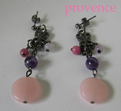 ピンクソープストーン、アメジスト、ラベンダーアメジスト、ロドナイトを使ったピアス