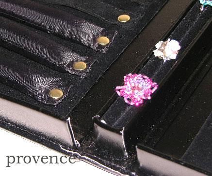 中心に指輪が入れられるスペースがあり、ファスナーではなくて箱を開けるようにして使います。