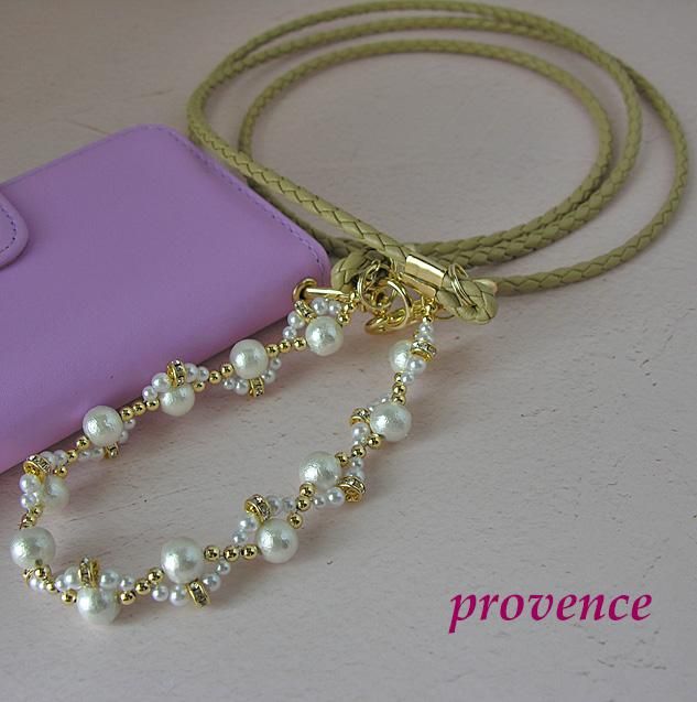 できるだけ軽く、壊れないように工夫して作ったストラップは、コットンパール、樹脂パールにチェコガラスロンデルが輝いていてスマホに華やかさを足しています。