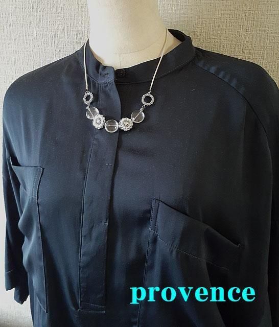 カットの入っている15mmのコイン型水晶と同じ大きさに作ったモチーフの涼しげなネックレスです。
