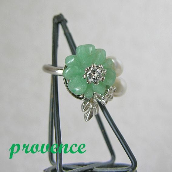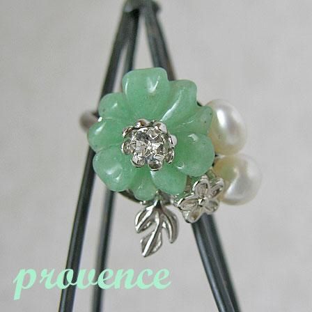 15mmのグリーンアベンチュリンの花に淡水パールやメタルをあわせたモチーフです。